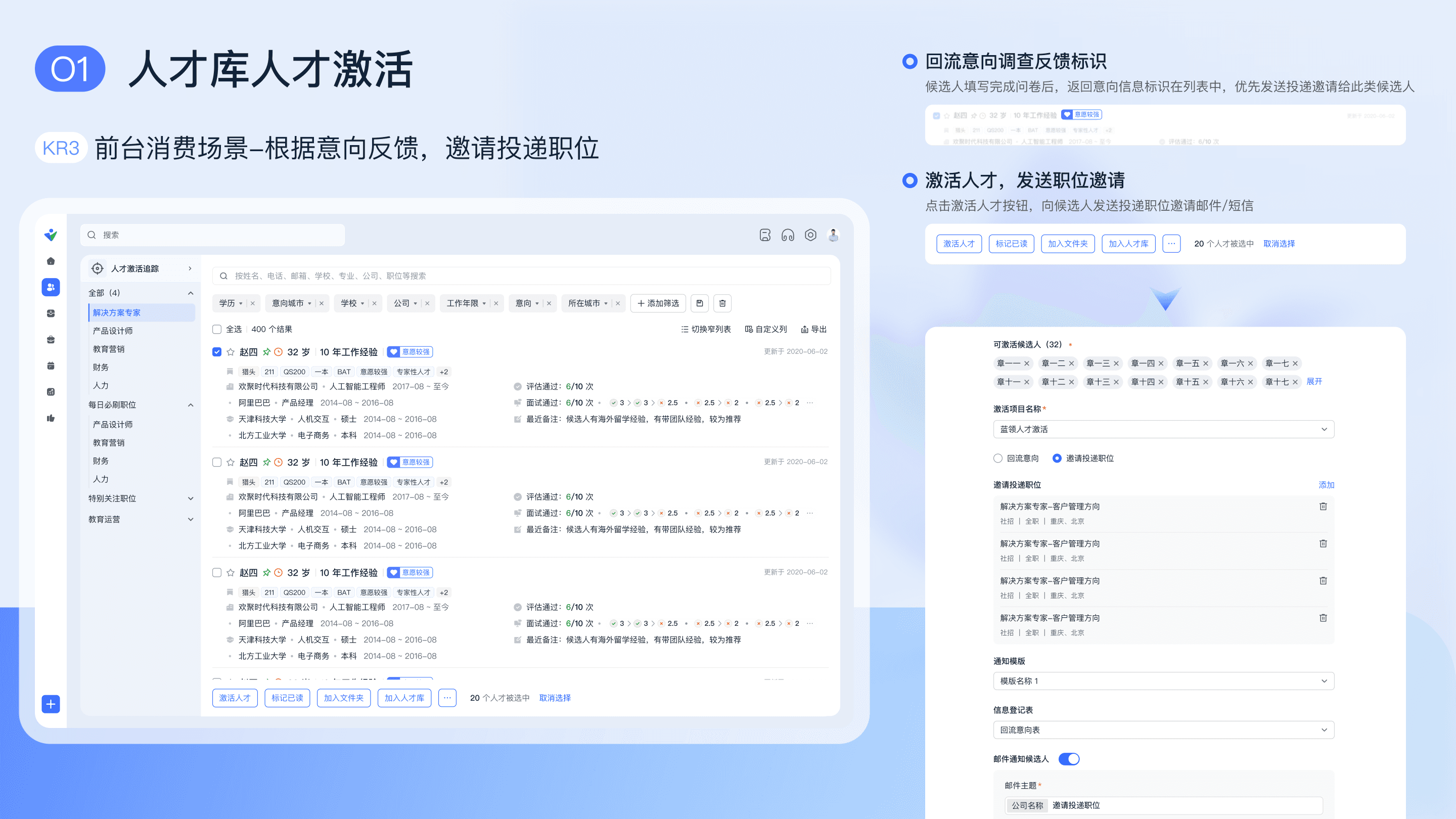 人才库支持人才激活,帮助盘活历史简历,让人才库真正成为有效招聘渠道